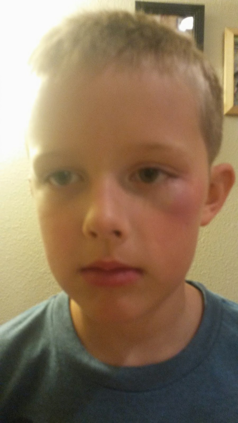 Wil kneed himself in the face after Nick tossed him on our bed and he got a black eye... a bad one